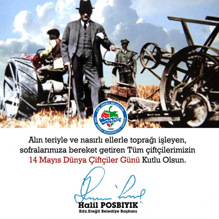 Ereğli Belediye Başkanı Halil Posbıyık Dünya Çiftçiler Günü dolayısıyla yayınladığı mesajında; "Alın teriyle ve nasırlı ellerle toprağı işleyen sofralarımıza bereket getiren Tüm Çiftçilerimizin 14 Mayıs Dünya Çiftçiler Günü kutlu olsun." İfadelerine yer verdi.