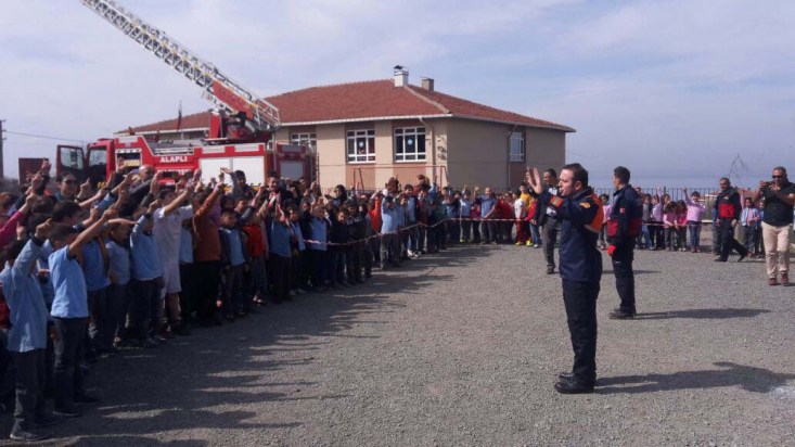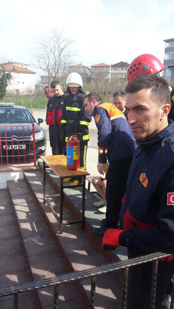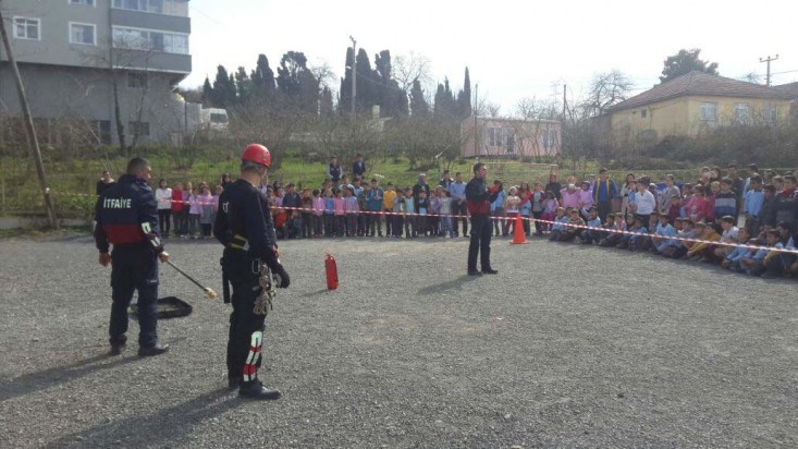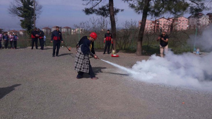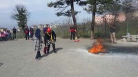 Okulda çıkabilecek yangın ihtimaline karşı öğrenciler bilgilendirildi. Tatbikatta okul alarmının çalmasıyla okulda bulunan öğrenciler sınıfları boşaltarak okul bahçesinde toplandılar.