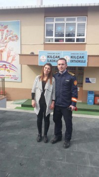 Okul Müdürü Süleyman Bayraktar ve Müdür Yardımcısı Sernur Taskın Alaplı Belediyesi İtfaiye Müdürlüğü Ekiplerine teşekkür ettiler.