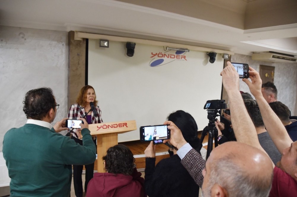 Konuşmasının ardından masaları gezerek basın mensupları ile sohbet eden CHP Zonguldak Milletvekili Adayı Neriman Posbıyık, gündemi değerlendirdi ve hatıra fotoğrafları çektirdi.