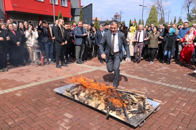 Ateşin etrafında halay çektikten sonra protokol üyeleri ve öğrenciler ateşin üzerinden atladı.