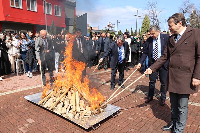 Üniversitede eğitim gören uluslararası öğrencilerinin ülke bayrakları ile geçişinin ardından halk oyunu gösterileri sergilendi. Özölçer, programda demir dövdü. Rektör Prof. Dr. İsmail Hakkı Özölçer, Rektör Yardımcısı Prof. Dr. Hakan Kutoğlu, Gençlik Spor İl Müdürü Hakan Yüksel, Kültür ve Turizm Müdürü Taner Dursun, nevruz ateşini yaktı.