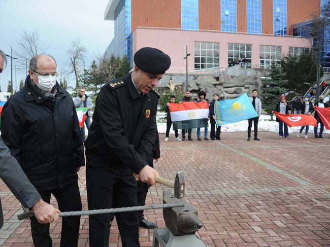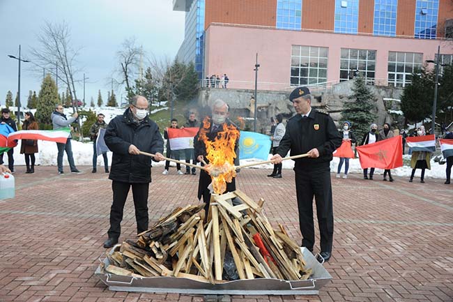 Protokol üyeleri tarafından Nevruz ateşinin yakılmasıyla birlikte bayram coşkusu katlanarak devam etti. Nevruz geleneklerinin olmazsa olmazlarından çekiçle demir dövüldü. Nevruz ateşinin çevresinde halay çeken öğrencilerin yanı sıra geleneksel Nevruz pilavı ikramı, kutlamalarda tam bir şölen havasında kutlandı.,