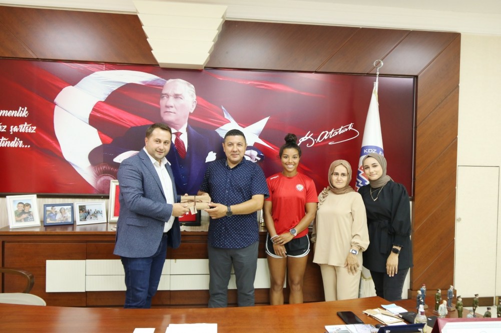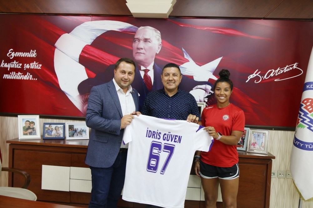 Ayrıca Kdz. Ereğli Belediye Başkan Vekili Emrah Karaarslan ve Kdz. Ereğli Belediyespor Kadın Futbol takımının Amerikalı Futbolcusu Rashida Marie Bea da, Güven’e Ereğli Belediyespor forması hediye etti.