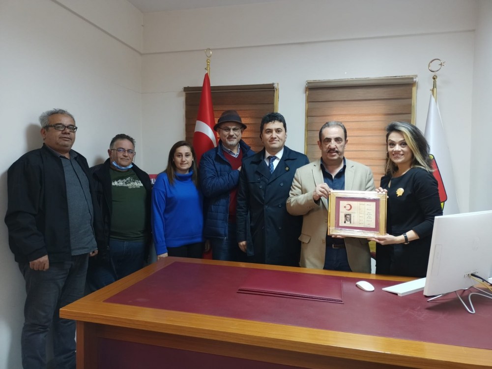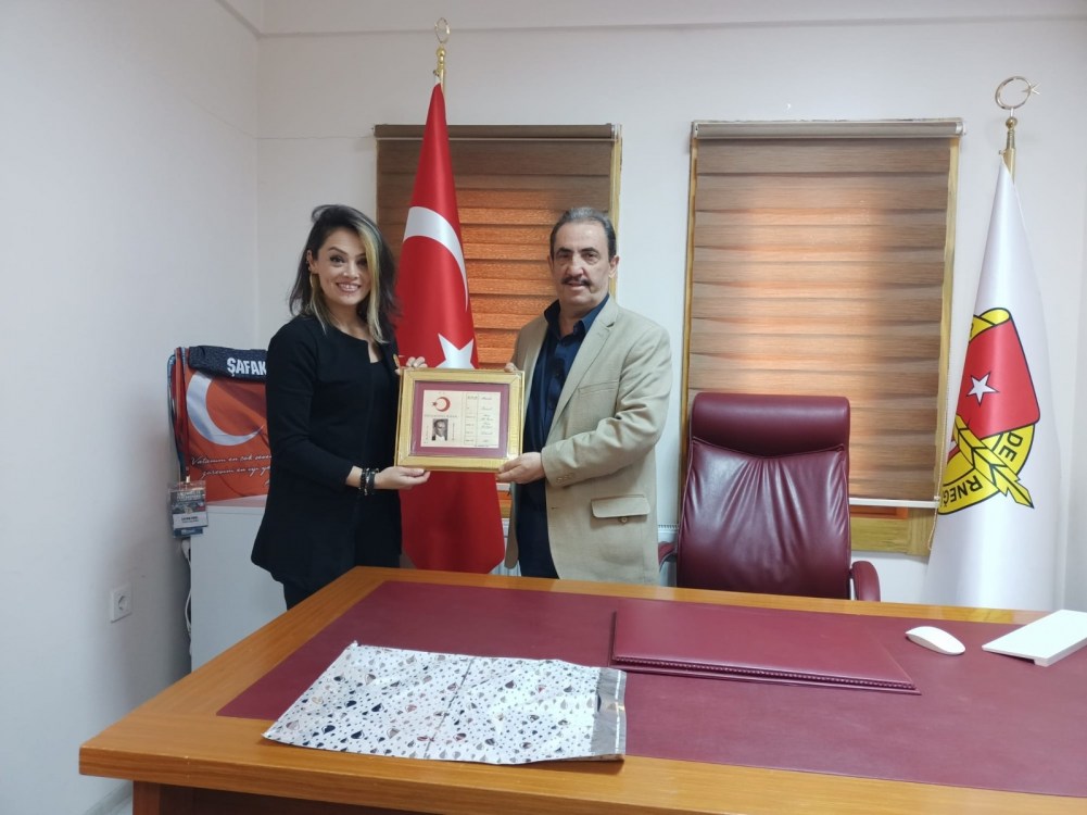 Samimi ve sıcak sohbet ortamında gerçekleşen ziyarette ADD Kdz. Ereğli Şube Başkanı Yeliz Armağan, EGD Başkanı Şafak Erel’e günün anısına ‘Atatürk’ün Nüfus Hüviyet Cüzdanı’ tablosunu hediye etti.