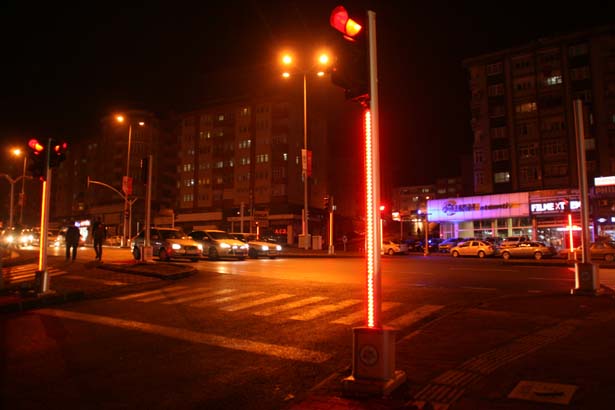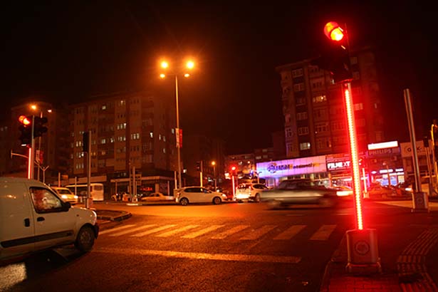 Işıklar aynı zamanda farklı dizaynıyla da dikkat çekti. Direklerin üstüne takılan ve Trafik ışıklarının renginin aynısını yansıtan aydınlatma aparatları, sürücülerin ışıkları takip etmesi açısından kolaylık sağlayıcı olarak değerlendirildi.