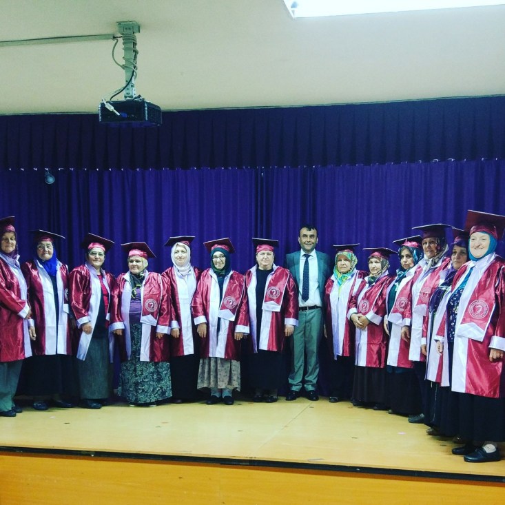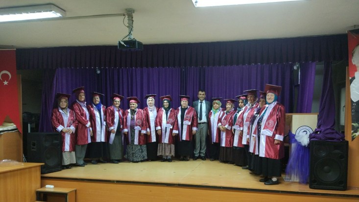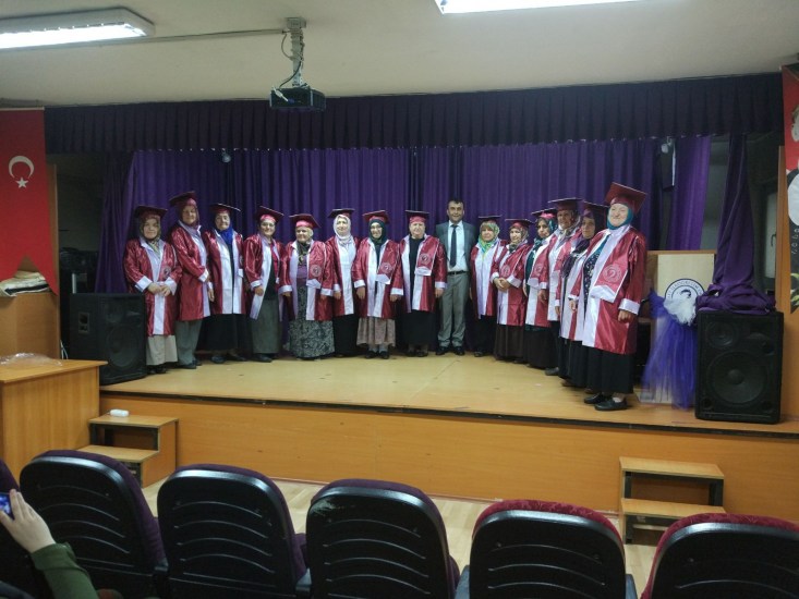 "Okulumuzda verdiğimiz kurslar120 saat sürdü. Bu süre zarfında kursiyerlerimize okuma yazmayı öğrettik. Kurslar sonucunda da 14 kadın okur-yazar sertifikası alarak mezun olmaya hak kazandı. Böyle anlamlı bir seferberlik kapsamında kursiyerlerimizi neşeli bir şekilde mezun etmek istedik. Okulumuzun konferans salonunda düzenlediğimiz küçük çaplı etkinlikle diplomalarını verdiğimiz kursiyerlerimiz kep fırlattılar."