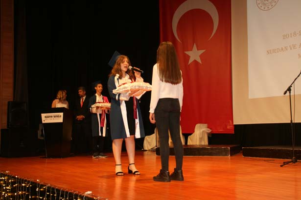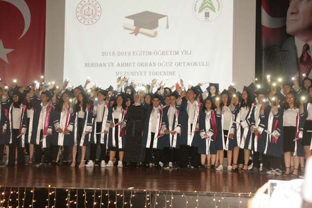 Karadeniz Ereğli Nurdan ve Ahmet Orhan Oğuz Ortaokulu 2018-2019 yılı mezunları, düzenlenen muhteşem mezuniyet töreninde keplerini fırlatarak eğitim yaşamlarında yeni bir aşamaya adım attılar. Törenle, sekizinci sınıfı tamamlayan beş şubeden 165 öğrenci mezuniyet sevinci yaşadı.