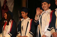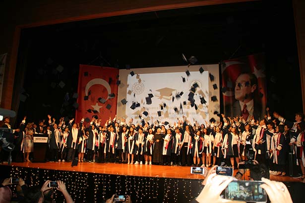 eşliğinde okul marşını seslendirmeleri ve kep fırlatmaları ile sona erdi.