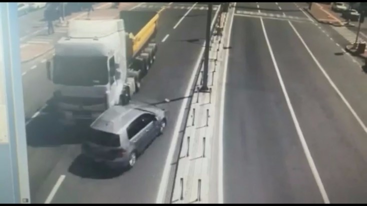 Diğer yandan yaşanan kaza MOBESE kameralarına yansıdı. Görüntülerde otomobilin yan yoldan ana yola çıktığı, TIR'ın önüne geçtiği ve TIR'ın çarpması sonucu dönerek orta refüje çarptığı görülüyor.