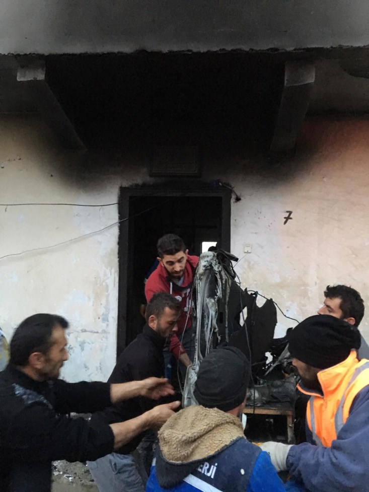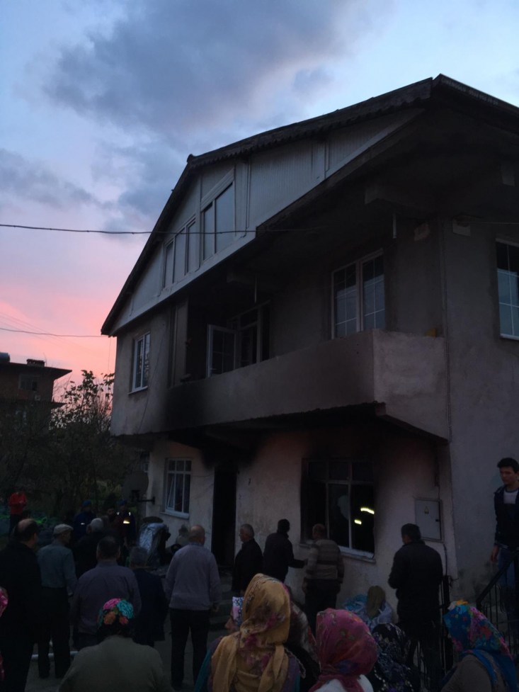 yangın çıkmış, çıkan yangın dolayısıyla evde büyük çapta hasar meydana