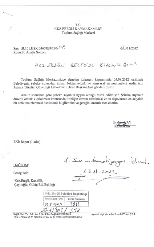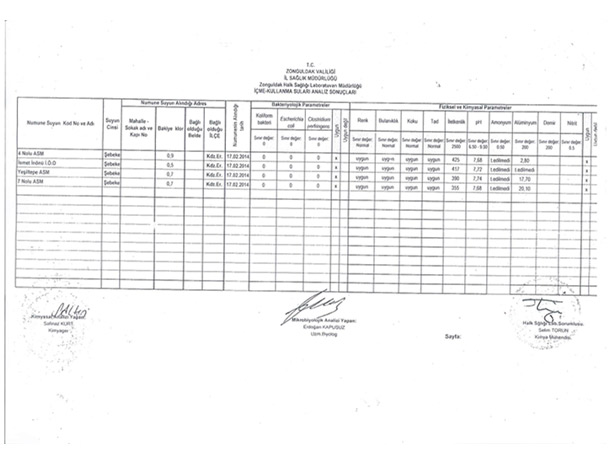 (EK-2) KDZ.EREĞLİ KAYMAKAMLIĞI, TOPLUM SAĞLIĞI MERKEZİ SU ANALİZ SONUCU