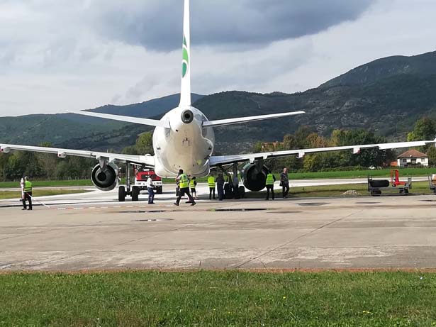 Firmanın tekerleği pistten çıkan uçak için pushback aracı göndereceği