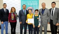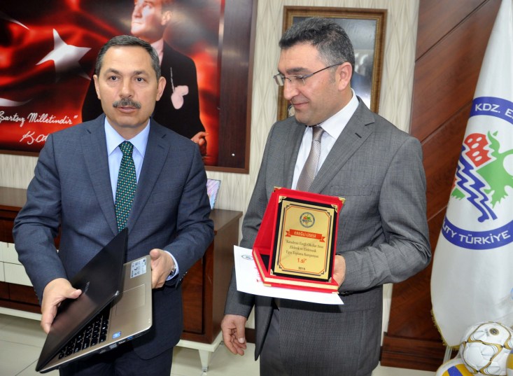 Karadeniz Ereğli Belediyesi Bilişim Sanayicileri ve İşadamları Derneği (TÜBİSAD) işbirliği ile düzenlenen 'E-atık Geri Dönüşüm Kampanyası 'nda en fazla e-atık toplayan 14 okuldan dereceye girenlere ödüllerini Belediye Başkanı Hüseyin Uysal verdi.