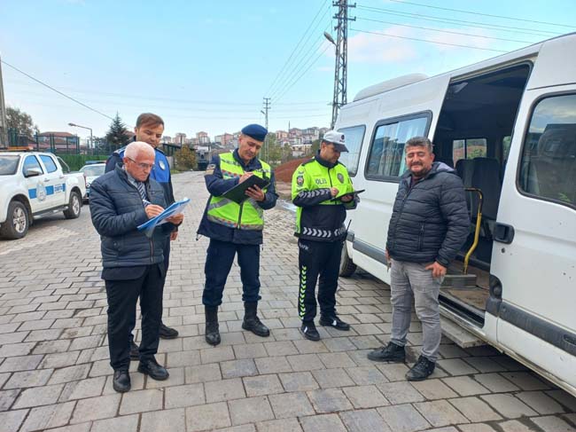 Zonguldak’ın Alaplı ilçesinde jandarma, İlçe Emniyet Müdürlüğü ve Alaplı Belediye Zabıta Müdürlüğü ile yapılan ortaklaşa gerçekleştirilen okul taşıtları denetiminde öğrencilerin can güvenliğine vurgu yapıldı. Özellikle servis sürücüleri bu hususta gerekli uyarılar ve dikkat edilmesi durumlar hakkında bilgi verildi.