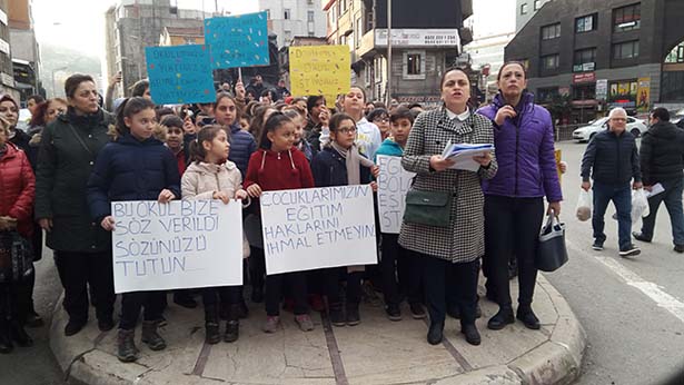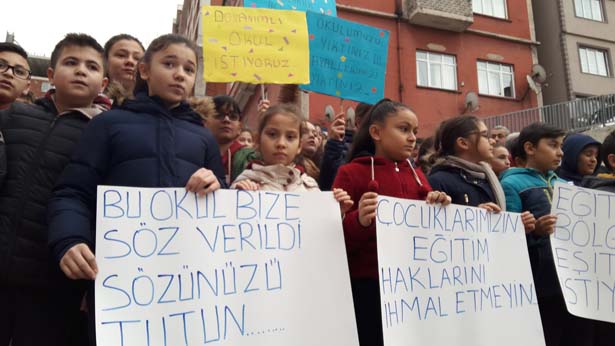 Zonguldak'ta başka bir okulda eğitim-öğretim gören öğrenciler ve velileri, yapımı tamamlanan