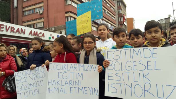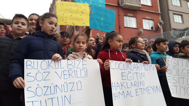 kendi okullarında eğitime devam etmek için eylem yaptı.