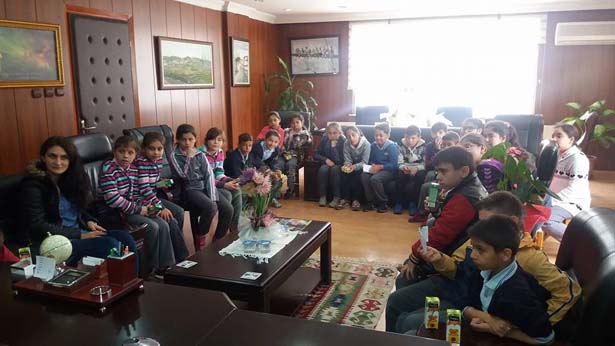 Gülüç Vesile Dikmen İlköğretim Okulu 4. Sınıf, D, E ve F şubesi öğrencileri Gülüç Belediye Başkanı Gökhan Demirtaş'a ziyarette bulundu.