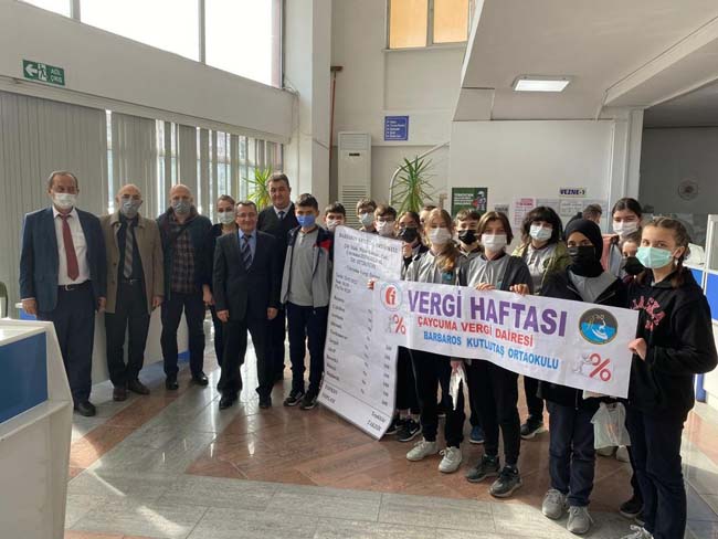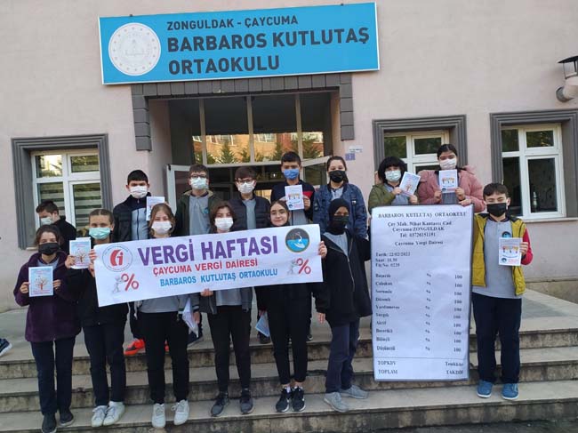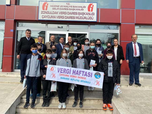 1990 yılından bu yana her yıl Şubat ayının son haftasında kutlanmakta olan ‘Vergi Haftası’ kapsamında; vergi bilincinin çocuklarda ve genç nesillerde oluşturulması, toplumun tüm kesimlerine benimsetilmesi, mükelleflerin vergiye gönüllü uyumunun sağlanması ve kayıt dışı ekonomi ile mücadele bilincinin oluşturulması amacıyla Barbaros Kutlutaş Ortaokulu Müdürü Harun Toksoy ve Fen Bilgisi Öğretmeni Ercan Süzer rehberliğindeki öğrenciler, Çaycuma Vergi Dairesi’ni ziyaret etti.