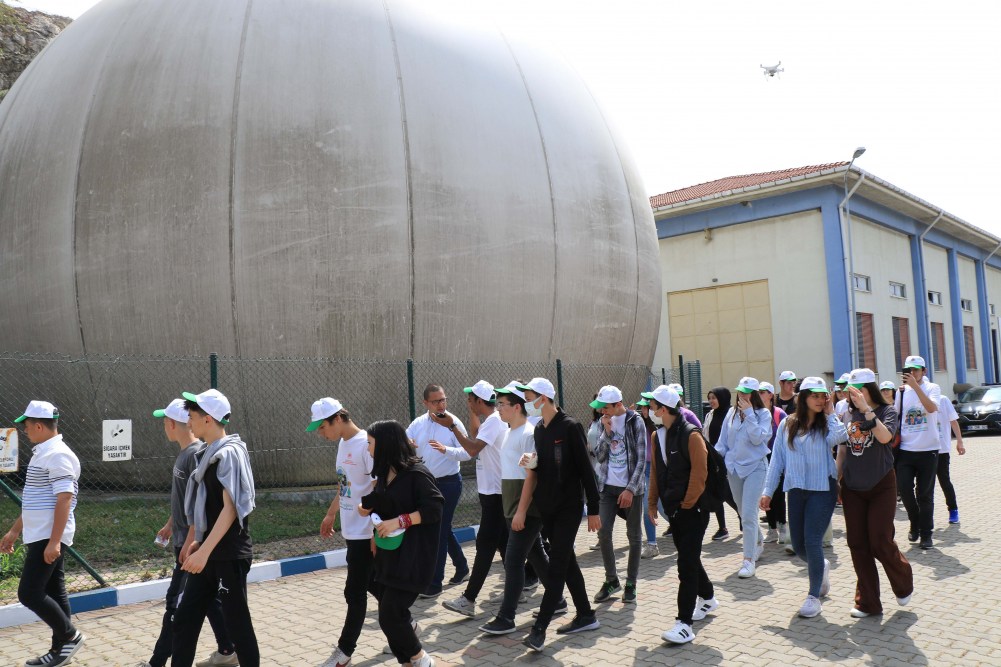 Öğrenciler "Temiz Çevre, Temiz Gelecek" sloganıyla hatıra fotoğrafı çektirdikten sonra tesisten ayrıldı.