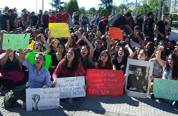 Bugün sosyal medya aracılığıyla haberleşerek Atatürk Anıtı Önünde toplanan öğrenciler son günlerde yaşanan olaylara tepki gösterdi. Eylemciler siyah giyinerek geldikleri alanda "Her Yer Taksim Her Yer Direniş", "Mustafa Kemal'in Askerleriyiz" sloganları atarak hükümete karşı tepkilerini dile getirdiler.