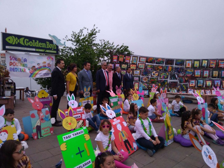 Zonguldak'ın Ereğli ilçesi eğitim kurumlarından İzmirlioğlu İlkokulu öğrencileri tarafından 'Sokağa dökülen Renkler' isimli resim sergisi sahil bandından açıldı.