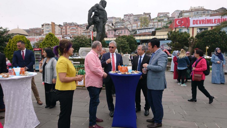 Düzenlenen sergiye Ereğli Kaymakamı Nazım Madenoğlu, İlçe Milli Eğitim Şube Müdürü Öner Akyürek, Okula adını veren İzmirlioğlu Ailesi adına Ahmet İzmirlioğlu, Okul Müdürleri, öğrenciler ve veliler katıldı. Ereğli İzmirlioğlu İlkokulu Resim Egzersizi Öğretmeni Şadiye Çakır ve okul öğrencilerinden oluşan gurubun "Sokağa Dökülen Renkler" konulu sergisi Herkül heykeli alanında sergilenirken, sergiyi gezen protokol ve katılımcılar tarafından oldukça beğenildi. Ereğli kaymakamı Nazım Madenoğlu, sergide emeği geçenlere teşekkür ederken, okul yetkilileri bir yıllık çalışma kapsamında öğrenciler tarafından hazırlanan resimleri sergilemenin mutluluğunu yaşadıklarını ifade ettiler.