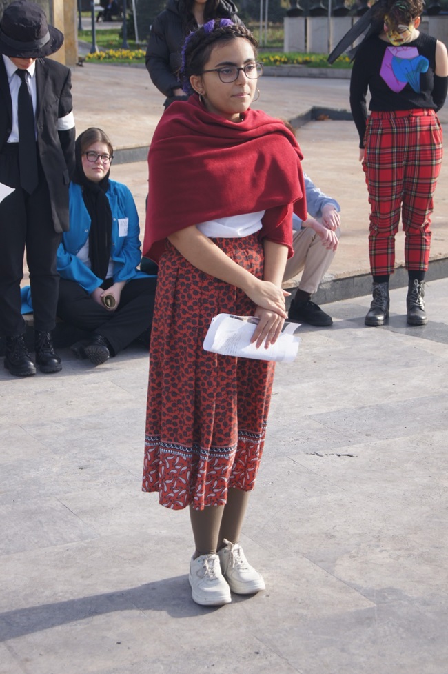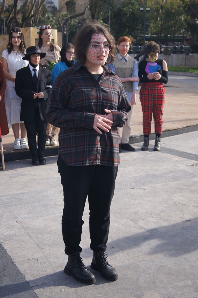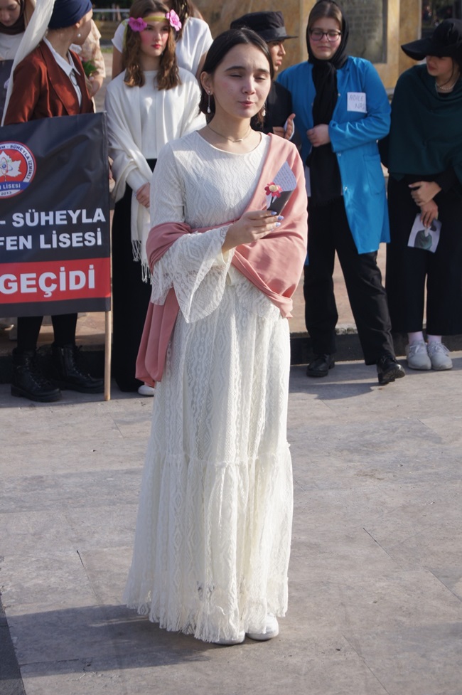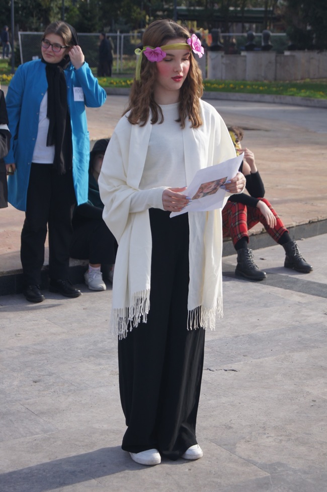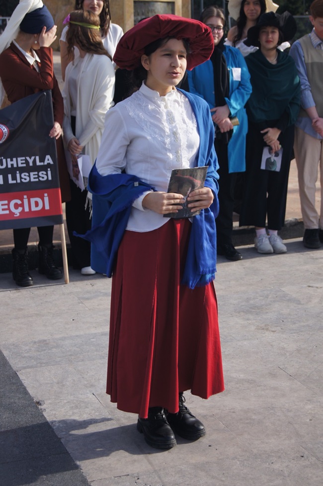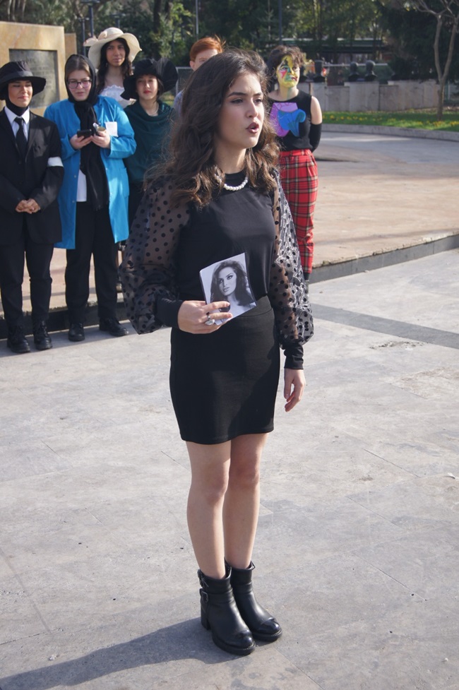 Düzenlenen aktivite kapsamında, öğrenciler müzik, sinema, tiyatro, görsel sanatlar alanında ki ün yapmış sanatçıları ve eserlerini canlandırdı. Öğrencilere ve topluma sanat bilinci oluşturuldu. Hülya Pınar” İbrahim Süheyla İzmirli fen lisesi görsel sanatlar öğretmeniyim toplum olarak sanatın ne kadar kıymetli olduğunu bilincinin ne kadar önemli olduğunu farkındalığı arttırmak için böyle bir çalışma yapmak istedik öğrencilerimizle sinema ses ve görsel alandaki sanatçılarımızın tablolarını canlandırarak kendilerini canlandırarak burada halkımızın farkındalığını sanata karşı farkındalığını arttırmaya çalışmasıdır. Teşekkür ediyorum" dedi.