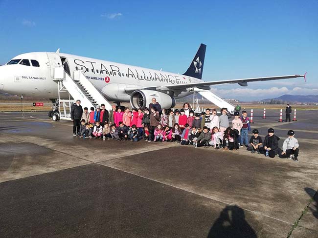 Ayrıca İstanbul’dan kalkan Türk Hava Yolları (THY) Zonguldak uçağının inişini ve kalkışını izleyen öğrenciler ilk defa bir havalimanı ve uçağı yakından görmüş oldular. Uçağın iniş ve kalkış anında heyecanlanan öğrenciler alkışlarıyla uçağı selamladılar.