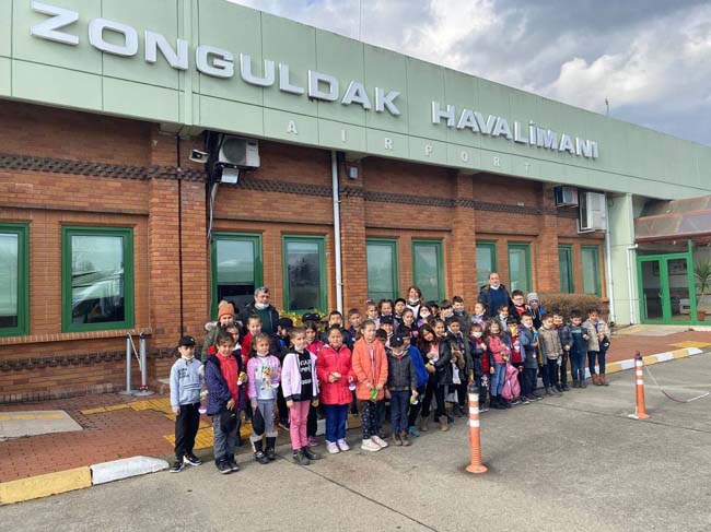 Zonguldak’ın Çaycuma ilçesinde Şehit Hasan Yağlı İlkokulu 3.sınıf öğrencileri ‘Mavi bilyeden uzaya’ eTwinning projesi kapsamında Zonguldak Havalimanı’nı gezdi.