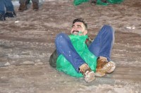 öğrenciler ise tahta parçalarının üstünde snowboard yaptı. Snowboard yapan