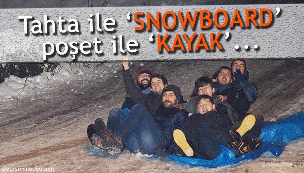 Zonguldak'ta dün akşam saatlerinde etkisini arttıran kar yağışı, en çok üniversite öğrencilerini sevindirdi. Tahta ile snowboard yapan öğrenciler, poşet ile kayarak doyasıya eğlendi.