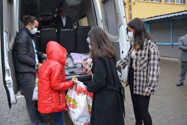 Proje çerçevesinde Mollabey İlkokulunda öğrencilere hediye dağıtan Hilal Açıkgöz, "Biz Üniversite olarak kendi öğrenci ve öğretmen arkadaşlarıyla beraber böyle bir projeye adım attık. Buradaki çocuklarımızın daha güzel çalışmalar yapabilme adına bu sosyal projeyi gerçekleştirmek istedik. Böylelikle başarılı bir yolda devam ettirirler" dedi.
