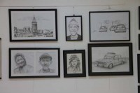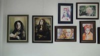 Lisesinde okuyan Resim bölümü öğrencileri yaptıkları resimleri açılan sergide