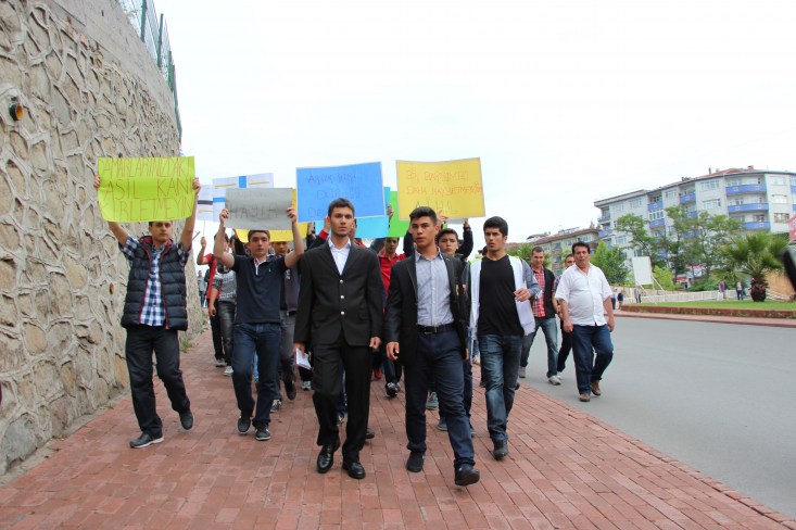 açıklamanın ardından yürümeye devam eden bir grup öğrenci, yaklaşık 1 kilometre