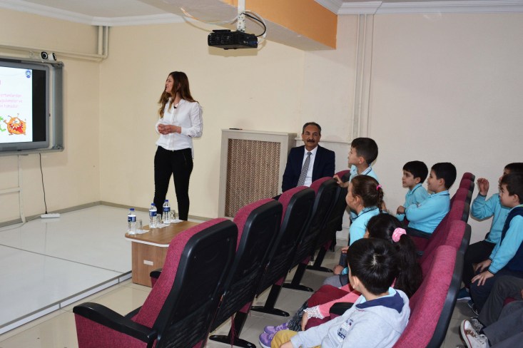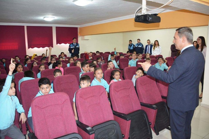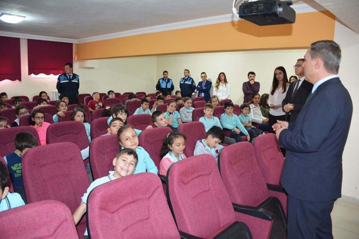 Okul Müdürü Yaşar Ciğer tarafından karşılanan Başkan Uysal, Zabıta Müdürlüğü personelinin 'Bilinçli tüketicilik, şehir yaşamı ve çevrecilik, hijyen ve sağlık' konularını içeren 'Çocuk Zabıta' seminerini öğrencilerle birlikte takip etti.