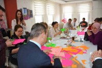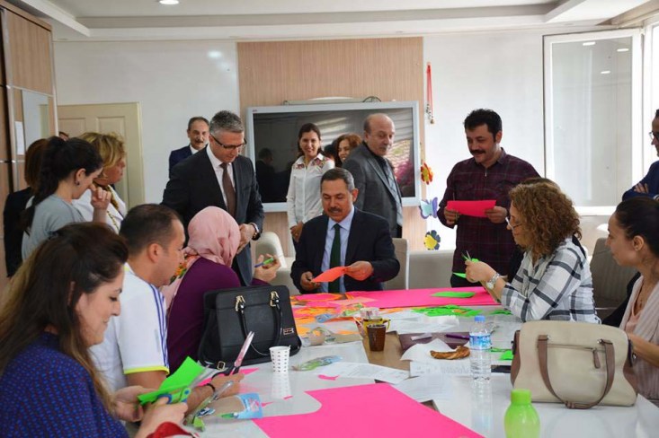 Başkan Uysal daha sonra Erdemir İlkokulu öğretmenleriyle bir araya gelerek 23 Nisan hazırlıklarına destek verdi.