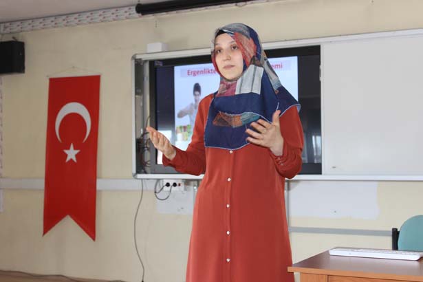 Düzenlenen Eğitimde Halk Sağlığı Hizmetleri Başkanlığından Diyetisyen Miyase Koru ise öğrencilere sağlıklı beslenme konularında bilgiler verdi. Koru, Adolesan dönemde kalıcı davranış değişikliği oluşturan yetişkin dönemde meydana gelecek sağlık risklerini en aza indirmek için yeterli ve dengeli beslenme nasıl olmalı, hazır ve paketli gıdaların içinde bizi bekleyen tehlikeler nelerdir, doymuş yağ, yüksek sodyum yada yapay şekerlere maruz kaldığımızda vücudumuzda meydana gelen metebolik bozukluklar nelerdir, fizyokimyasal ve biyoaktif maddeler içeren besin grupları nelerdir konularında geniş kapsamlı olarak bilgilendirmede bulundu.