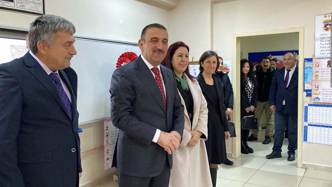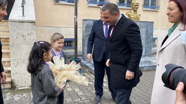 Milli Eğitim Müdürü Osman Bozkan, öğretmen ve öğrenciler tarafından okul bahçesinde karşılanan Vali Osman Hacıbektaşoğlu’na eşi Güney Hacıbektaşoğlu da eşlik etti.