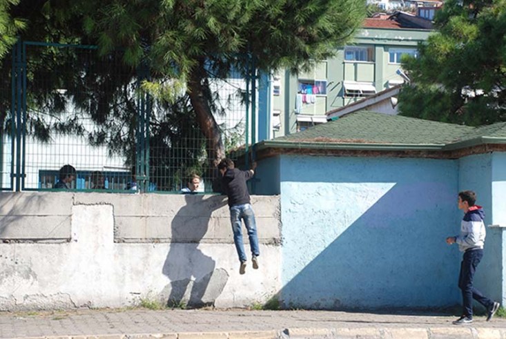 rağmen bir yolunu bulup okul bahçesinin dışına kaçmayı başarıyor.