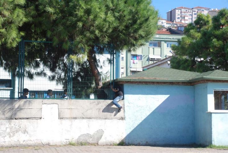 Zonguldak'ın Karadeniz Ereğli ilçesinde bulunan bir lisede ağaçların ve demir parmaklıkların gres yağı ile yağlanması öğrencilerin okuldan kaçışını engelleyemedi.