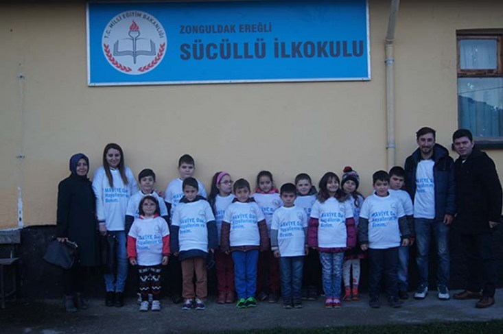 Ereğli Belediyesi tarafından temin edilen araçla Sücüllü İlkokulu'na gidilerek öğrencilere proje kapsamında bastırılan tişörtlerle küçük hediyeler verildi.