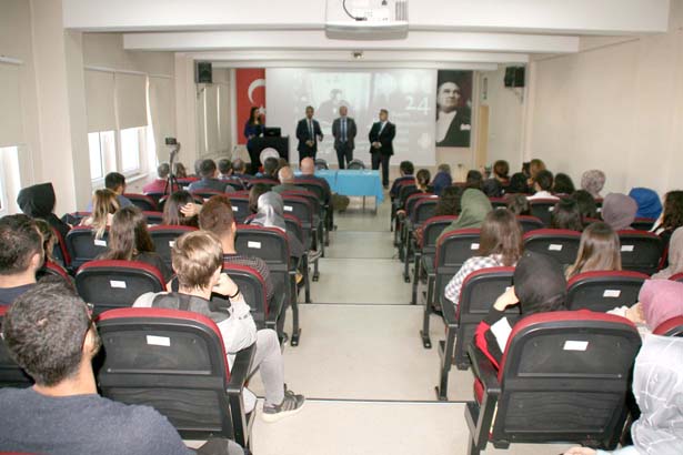 Okulun konferans salonunda düzenlenen, Kdz Ereğli Bilim ve Sanat Merkezi’nden Fizik Öğretmeni Adnan Akyüz, Kimya Öğretmeni Gürol Keserci, Müzik Öğretmeni Taylan Çağatay Akın’ın konuşmacı olarak katıldığı konferansı, Ereğli Eğitim Fakültesi Dekan Vekili Prof. Dr. Soner Yavuz, Dekan Yardımcıları, Öğretim Görevlileri ve öğrenciler izledi. Konferansta saygı duruşunda bulunuldu, İstiklal Marşı okundu.