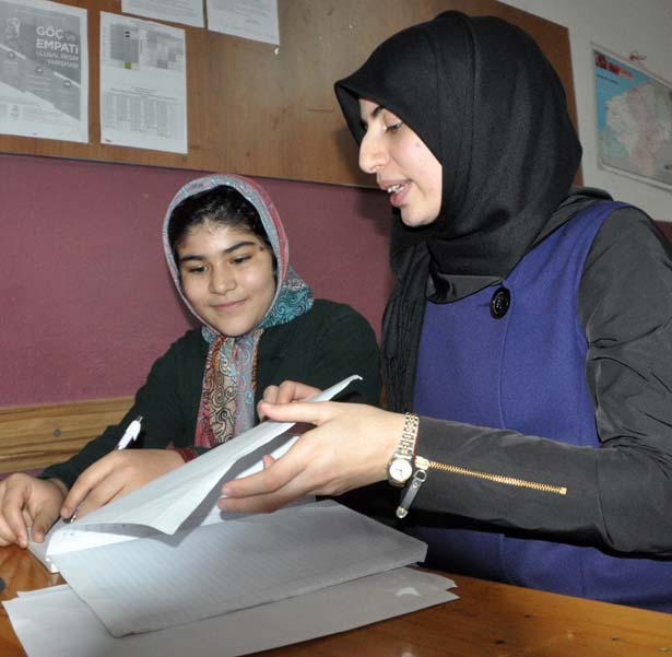 gören öğretmen Almeral, küçük kızın öğrenimine katkı sağlamak amacıyla çeviri