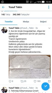örnek Zonguldak'tan. Afgan bir öğrencimiz öğretmeni için bir şiir yazmış.
