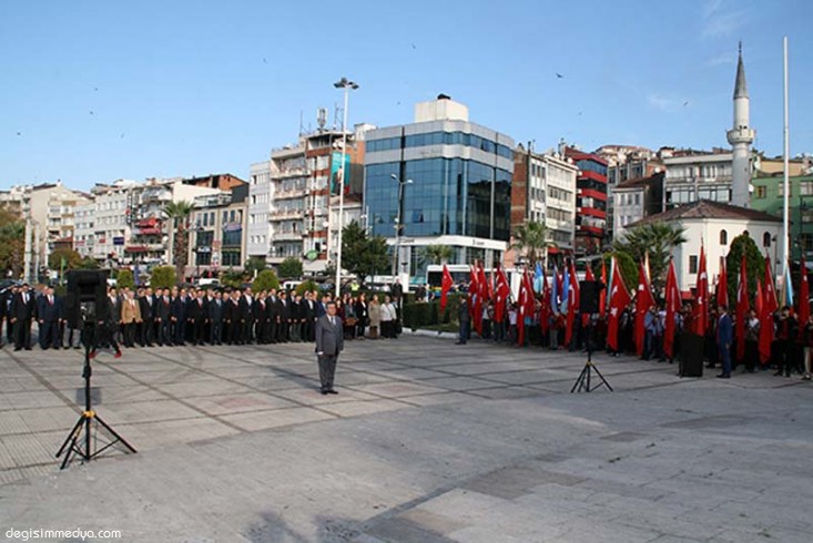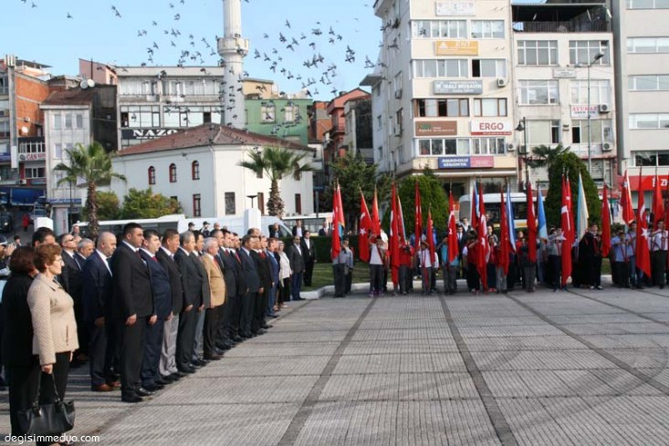 Törende Ereğli İlçe Milli Eğitim Müdürü Numan Korkmaz, ilçe milli eğitim müdürlüğü çelengini Atatürk Anıtı'na sündü. Saygı duruşunda bulunuldu, İstiklal marşı okundu ve bayraklar göndere çekildi.