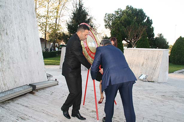 Törende, Kdz. Ereğli Milli Eğitim Müdürü Numan Korkmaz, Atatürk Anıtı'na çelenk sundu. Hayatını kaybetmiş öğretmenler ile şehitler için saygı duruşunda bulunuldu, İstiklal Marşı okundu.
