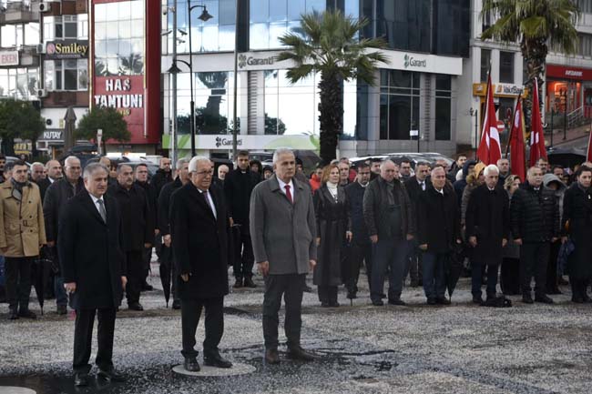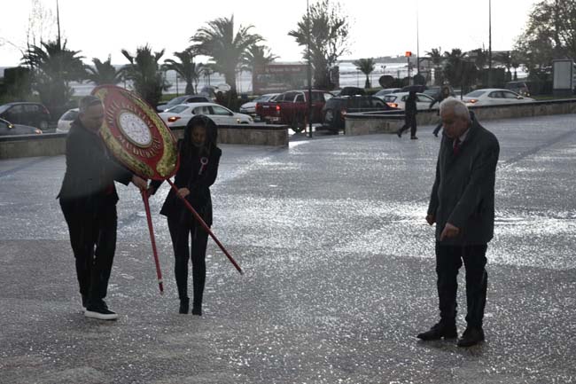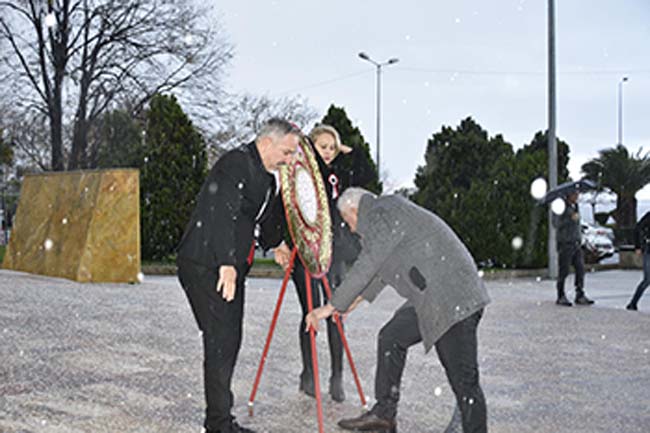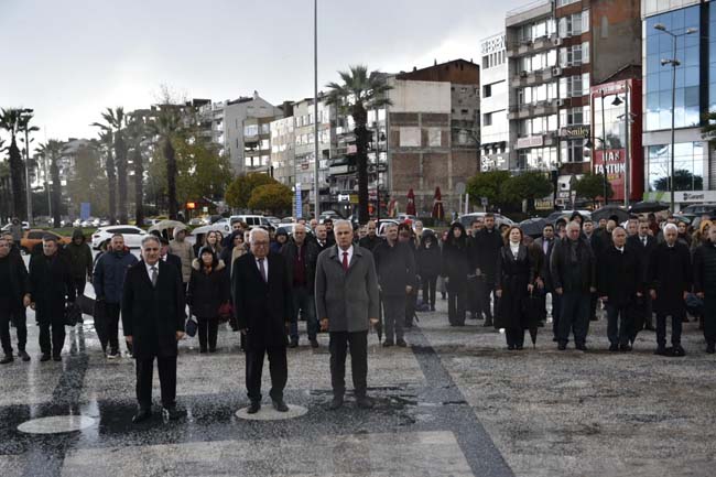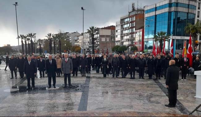 İlk tören Atatürk Anıtı önünde gerçekleştirildi. İlçe Milli Eğitim Müdürü Harun Akgül çelenk sundu. Tören, çelenk sunumunun ardından saygı duruşu ve İstiklal Marşı’nın okunmasıyla sona erdi.