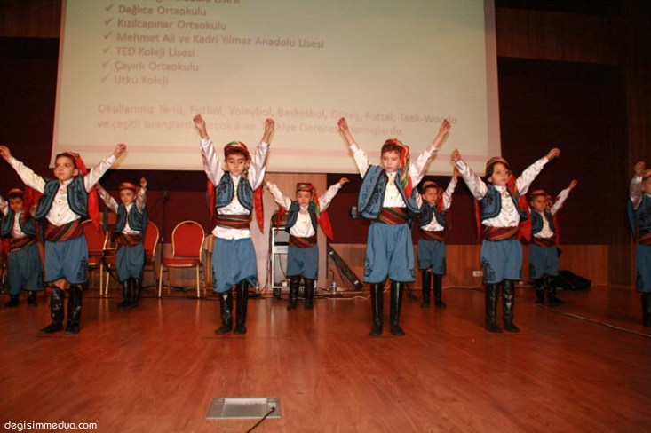 Gece kapsamında Nurdan ve Ahmet Orhan Oğuz İlkokulu Halk oyunları ekipleri Ege bölgesi ve Ereğli'ye özgü halk oyunları gösterisi gerçekleştirdi.