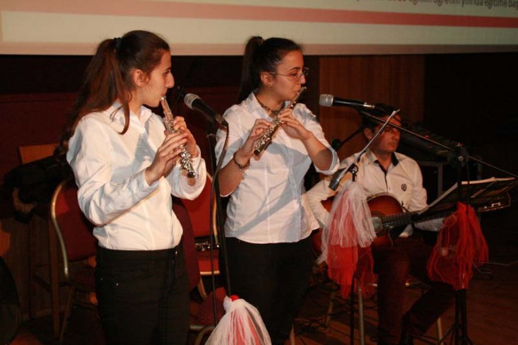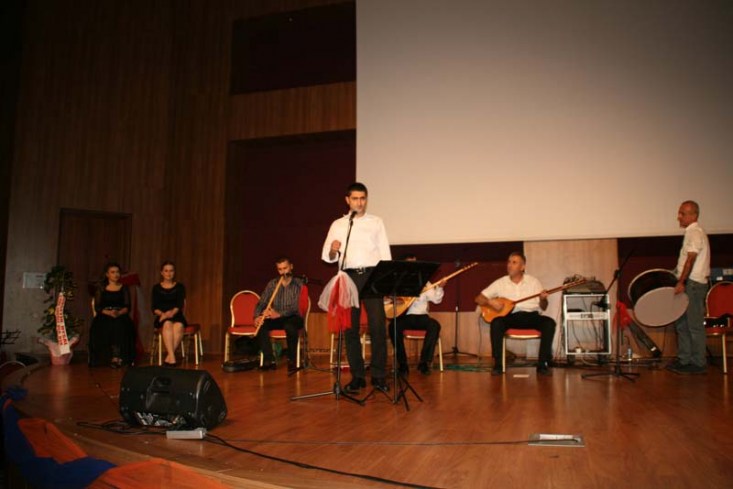 İlçedeki çeşitli okullarda görev yapan öğretmenlerden oluşan saz heyeti ve icracılar, şarkı ve türküler seslendirdi.